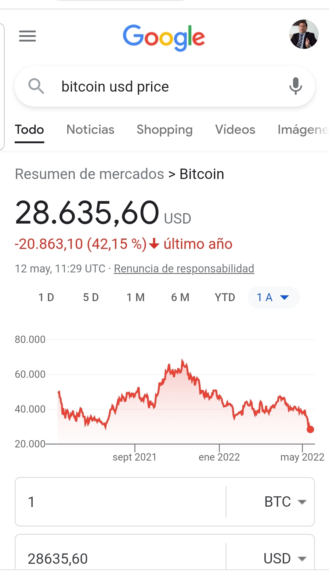 Cae ahora mismo 42,15% nominal y 46,58% real, luego de descontar la pérdida de poder de compra por la inflación de abril 2022 del IPC de EE.UU. de 8,3% (-46,58% = [1-42,15%] ÷ [1+8,3%]).