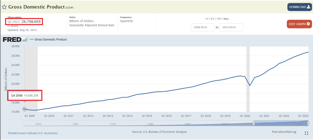 Gráfico Nro. 1: PIB nominal en los EE.UU. de T4-2008 a T2-2023