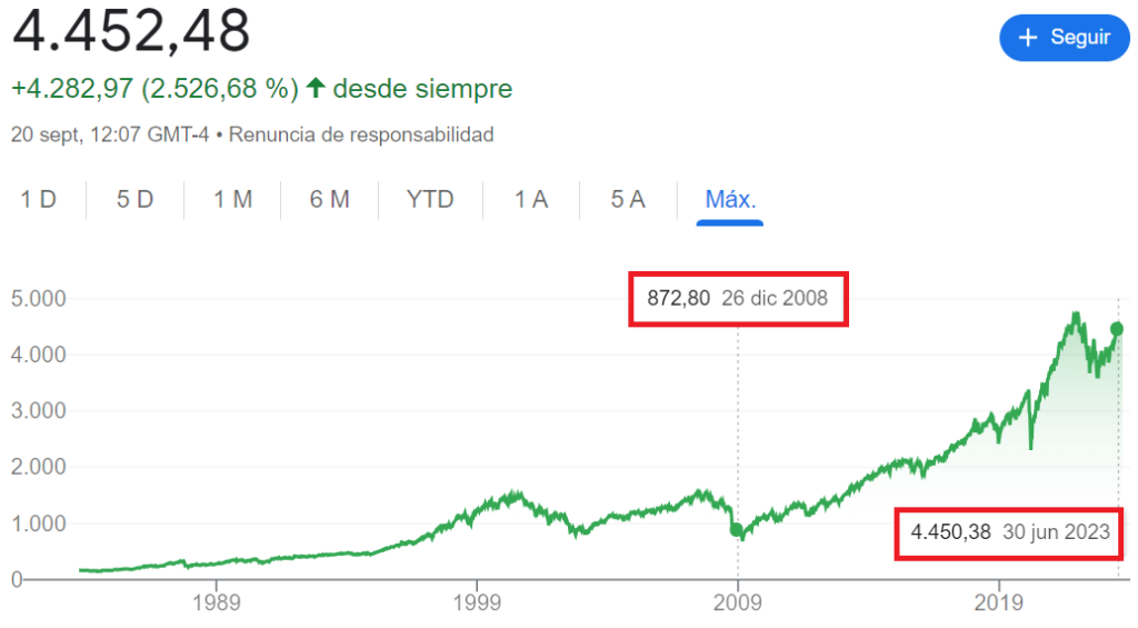 Gráfico Nro. 2: Índice SP&500 de T4-2008 a T2-2023